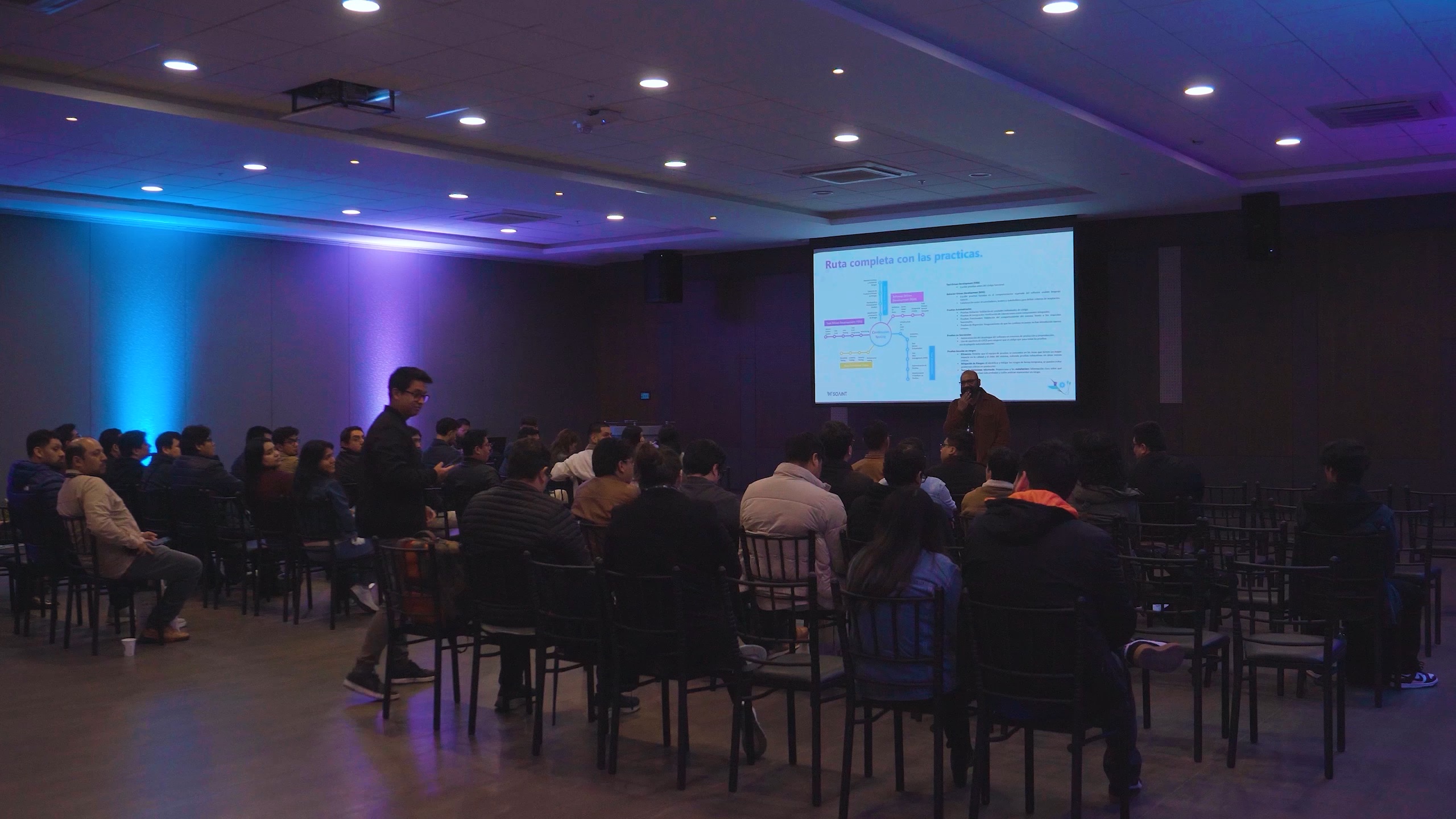 Los salones del Centro de Convenciones de Esan acogieron las distintas charlas y sesiones programadas, permitiendo el desarrollo de ponencias sobre innovación, automatización, colaboración y buenas prácticas DevOps. La infraestructura del centro facilitó un entorno óptimo para la interacción entre speakers y asistentes.